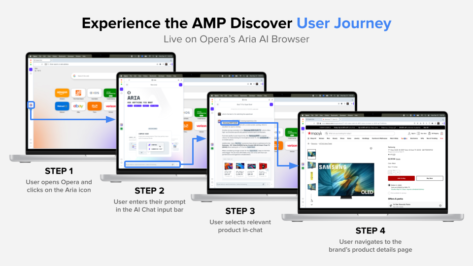 For example, a user goes to Opera Aria’s AI assistant and asks, “What’s the best lightweight gaming laptop for under $1,000?” AMP Discover then identifies relevant products from adMarketplace’s expansive network of advertisers and surfaces them seamlessly within the chat. With just one click, the user can navigate directly to the brand’s product detail page. No cluttered search results, no third-party checkout, no ads that make you think, “how did it come up with this?” The experience feels intuitive, fast, and transparent, benefiting both consumers and advertisers alike.